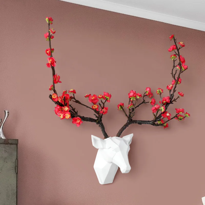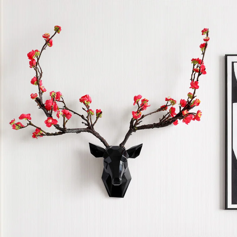 Deer head With Flower Horn 3d Wall Decor Modern Animal Hear Livingroom house Decorations Abstract S