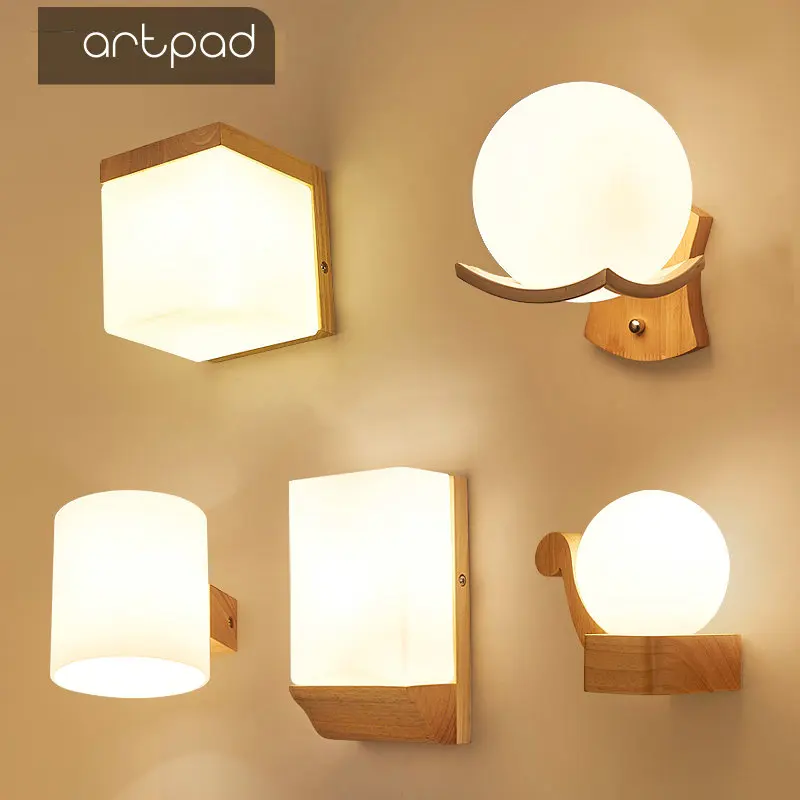 HOT Sale Artpad Scandinavian Nordic Wall Wood Light Glass Lampshade Corridor Balcony Bedside LED Side Wall L
