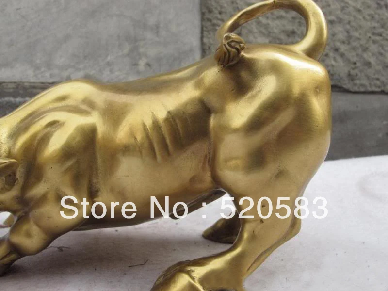 HIGH QUALITY 8 Chinese pure brass Copper carved Wall Street Fierce Bull OX fengshui Statue