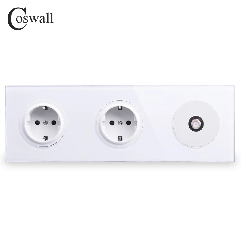 BEST Coswall Tempered Pure Glass Panel 16A Double EU Standard Wall Power Socket + 1 Gang Satellite Conne