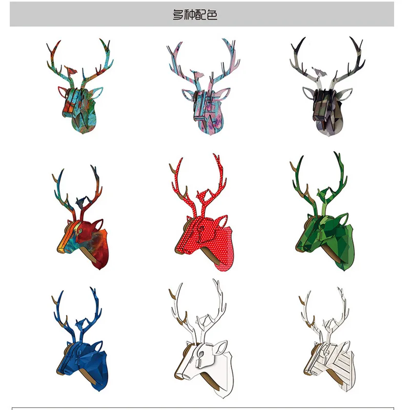 REVIEW TOP SELLER Christmas Decorations Furniture Jewelry wooden DIY assembled animal head painted deer head wall han