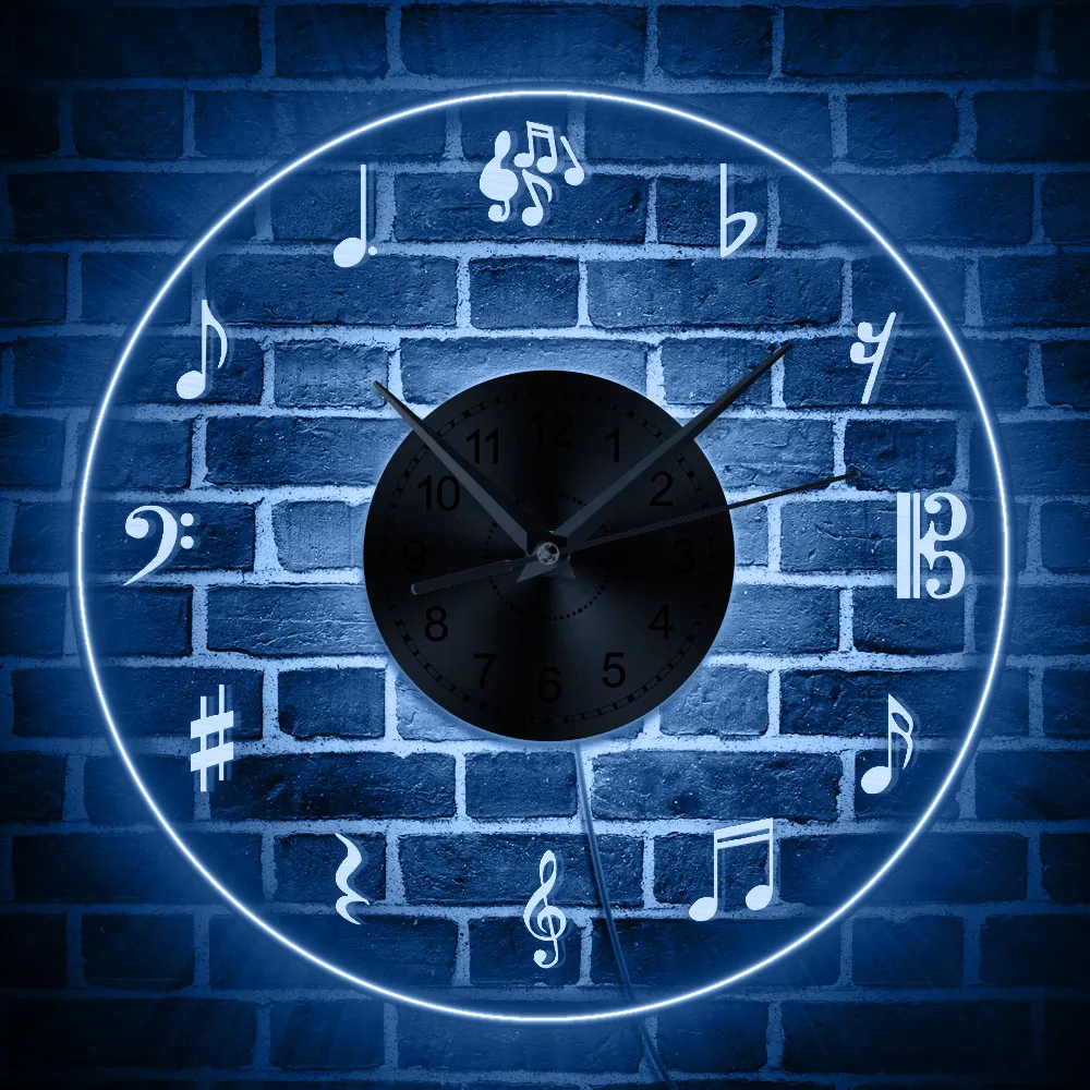 TOP Music Notes Wall Art LED Lighting Wall Decor Modern Design Wall Clock With LED Backlight Treble Cle