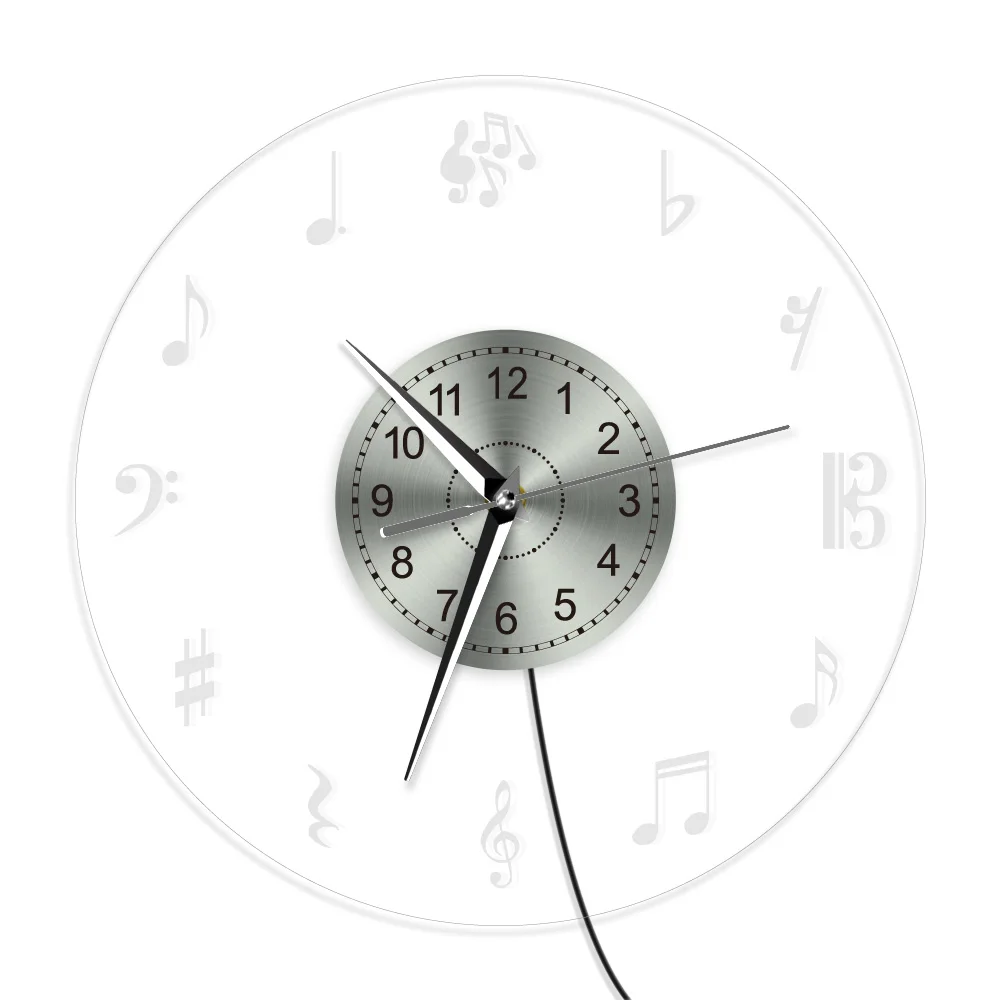 Music Notes Wall Art LED Lighting Wall Decor Modern Design Wall Clock With LED Backlight Treble Cle